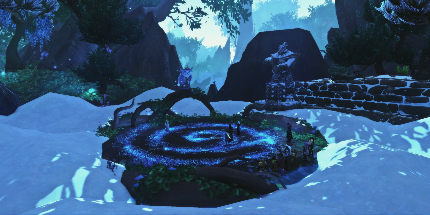 Finally, Sylvari transported the group back to Azeroth, but their homecoming was not as smooth as perhaps expected. They all found themselves amidst some elven ruins in Moonglade, within an intricately constructed magical barrier. Their captor soon revealed himself... Valodriel.