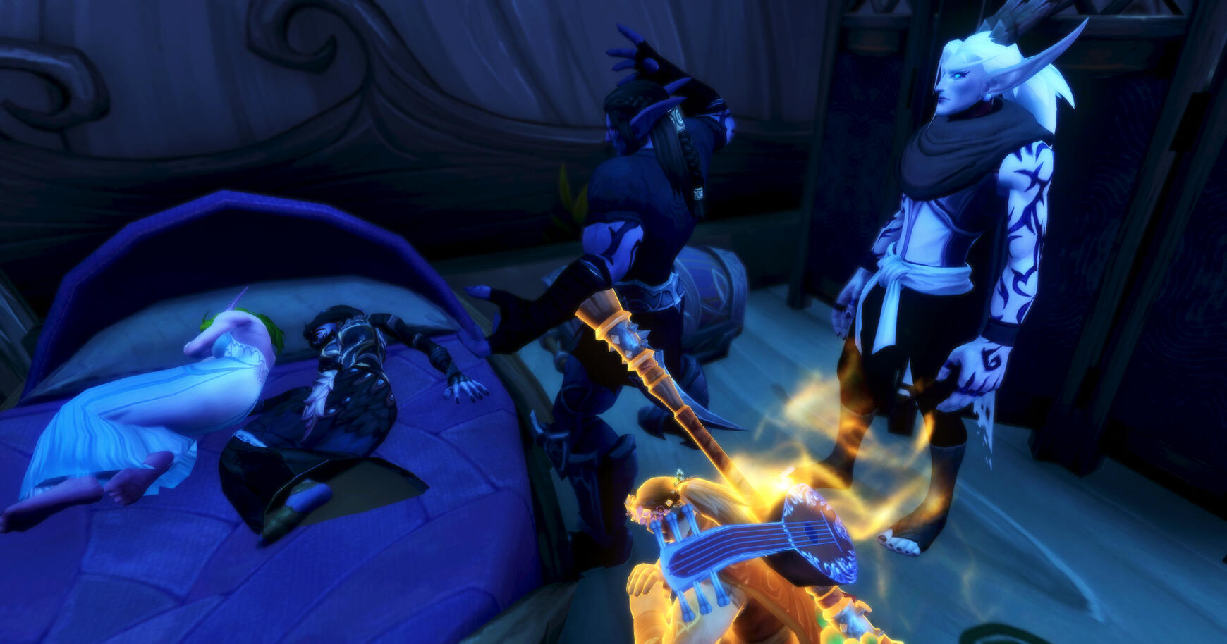 The group made their way back to Nighthaven, which, by now, had been stripped of the myriad of Lunar Festival decorations, and abandoned by the crowds from all across Azeroth. The quiet little town was perfect, the inn they'd called their base of operations during the festivities now blissfully empty.
