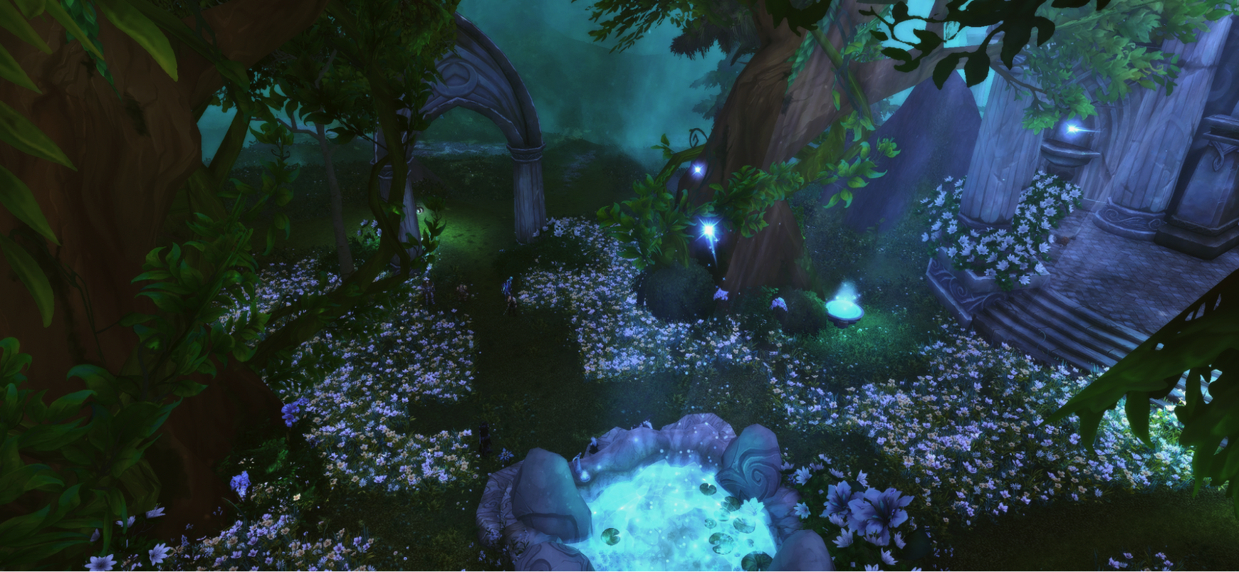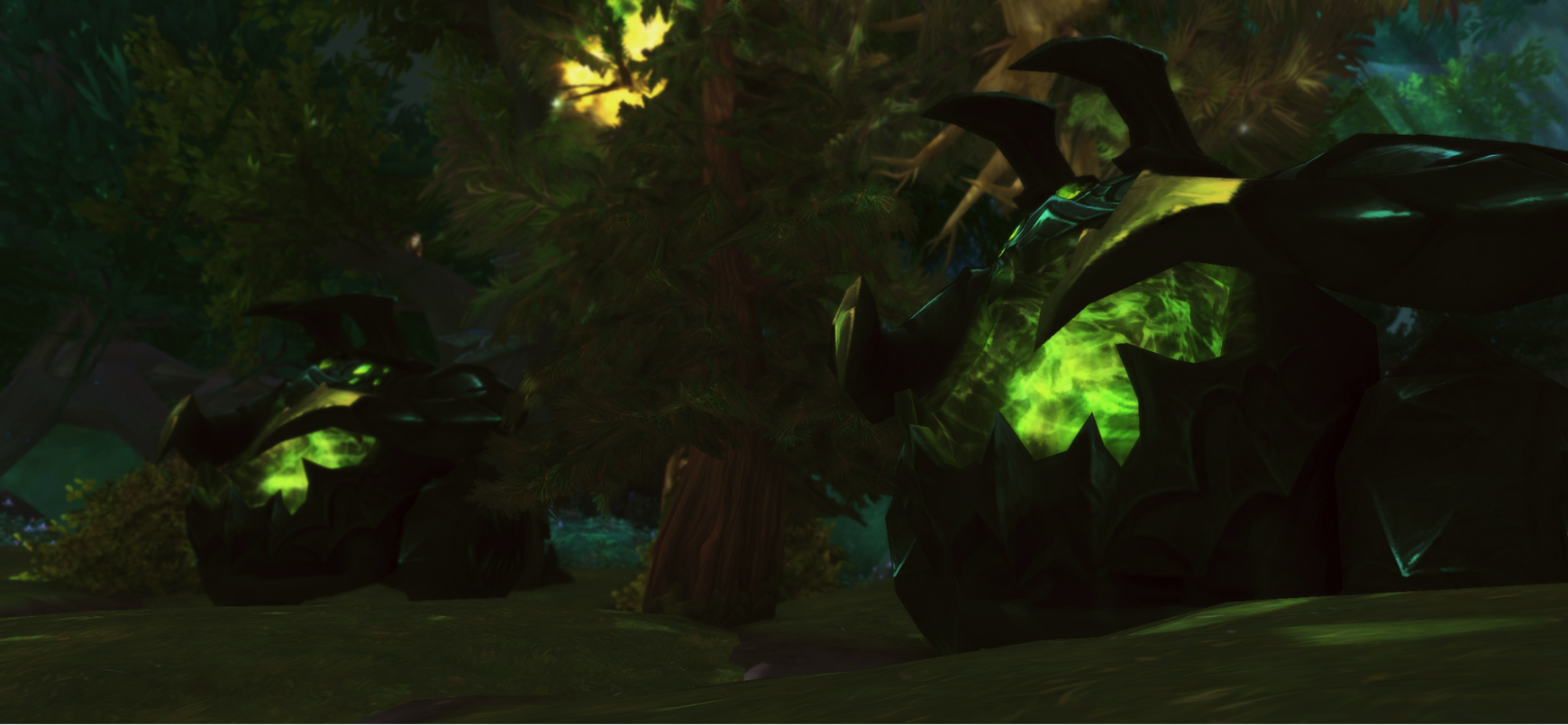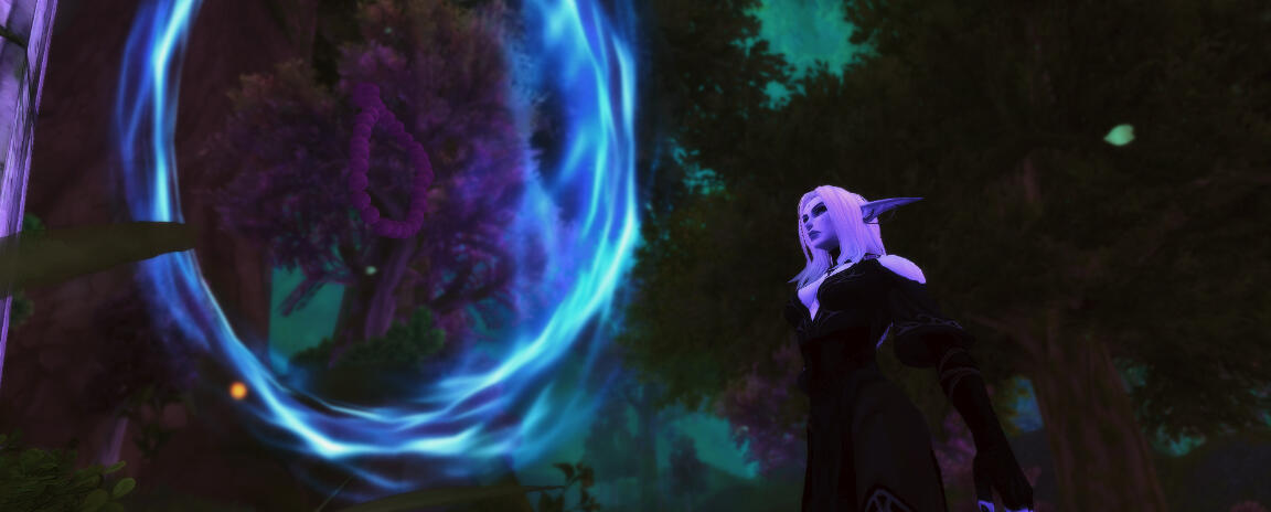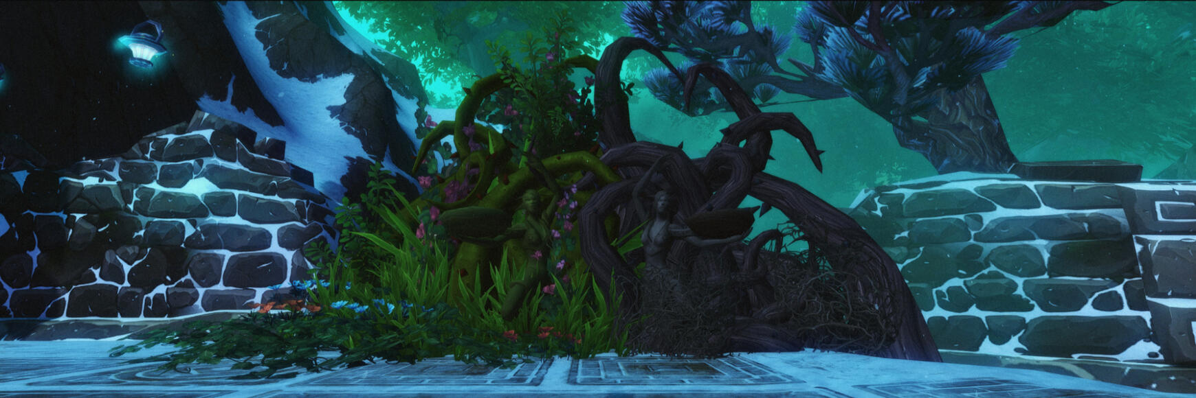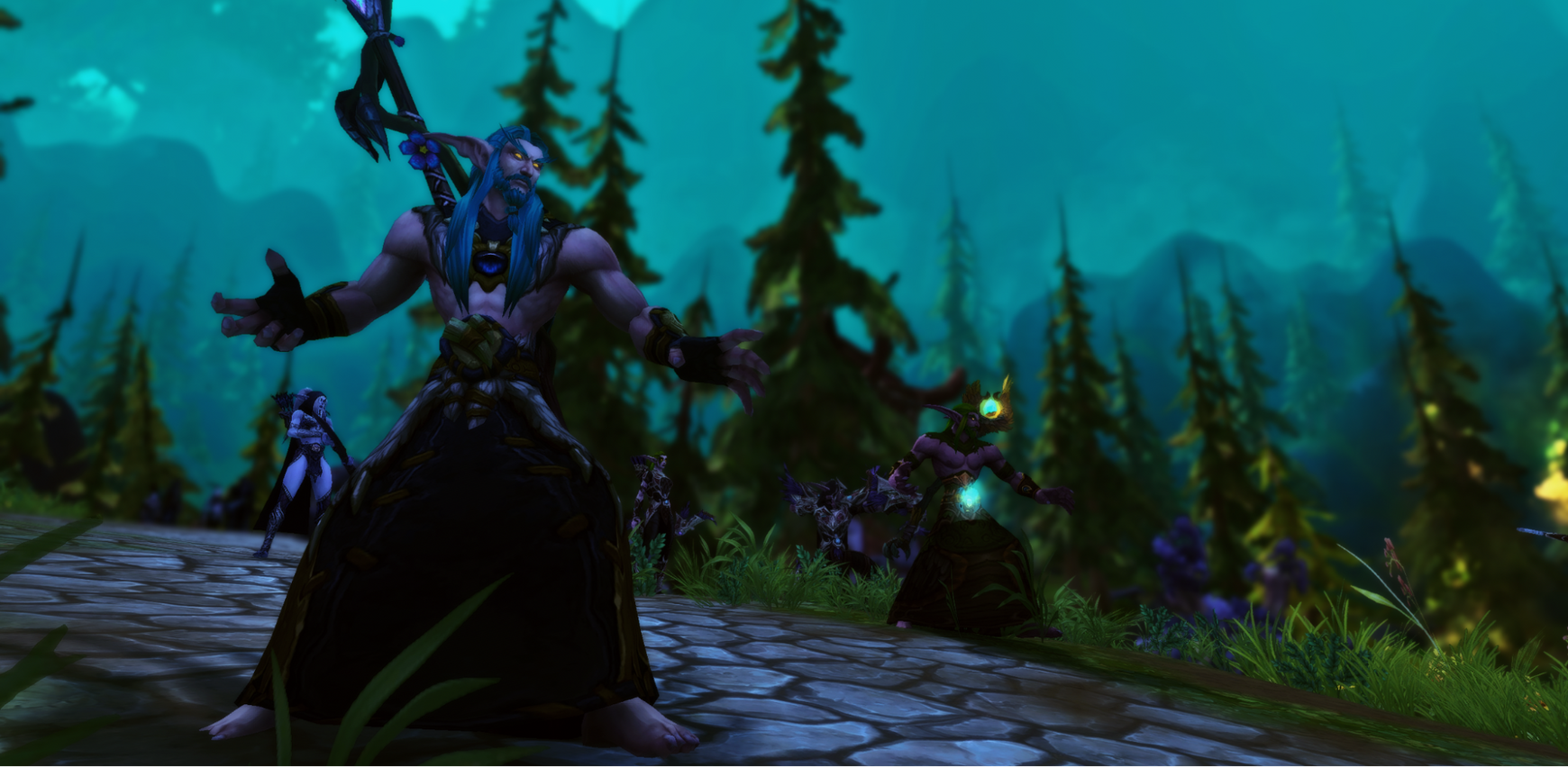 Kalendil huffed as she used her staff to help her navigate the forest floor. Months of being practically cloistered up at the temple had not helped her stamina, and she was out of breath after mere minutes of walking. She looked at Sylvari and Mythralis. The two did not display any signs of fatigue, they were alert and looked ready to spring into action at any time.“Long time since we were climbing trees near the grove, eh, Kali?” She heard Sylvari’s voice, followed by the druid’s usual subdued chuckle.“Shush, you,” she replied, between increasingly larger gulps of air. “It sounds like you two have been chasing this one for a while. What’s the story?”Mythralis took to answering the question. “I came across her a few months ago, in Feralas. I was sent to investigate strange happenings near Dream Bough. Although I do not know what her intent was, it was clear she was trying to do something to the dream portal. I thought I could handle her alone, but I barely escaped with my life.” She cleared her throat, and adjusted the strap holding her bow in place. “The minions of the void are slippery, so I decided I needed help. Luckily, I came across Sylvari in Feathermoon Stronghold, and enlisted her help,” she said, in a matter-of-fact voice.“Imagine my surprise when I saw dear mother – whom I’d believed dead after Teldrassil – alive and well in Feralas, asking for my help, of all people,” Sylvari said, interrupting her.“Your rudeness does you no credit, daughter. In any event, the second attempt failed as well. She slipped through our fingers, using illusions and shadow magic to trick us. I kept an ear to the ground since, and then I heard about the void manifestations in Val’Sharah.”Kalendil shuddered. “To think one of our own would be capable of such a thing. I would never have imagined it.” She frowned, and continued. “Is she Twilight’s Hammer? I thought they were all vanquished.”“We found evidence in her camp that seemed to indicate that. Or at least a powerful devotion to the Old Gods,” Sylvari replied.“Goddess. Do you think she’s trying the same thing here? Shala’nir is certainly close to the Dreamgrove.” Kalendil bit her lip, breathlessness momentarily forgotten as she pondered their enemy’s intentions.“It’s highly likely, yes,” Sylvari said.“I believe you will be the key to defeating her this time, Kalendil. A minion of the Old Gods is surely no match for the Goddess’ light.”Kalendil exchanged a look with Sylvari. Some things never change, it seems, and the old sentinel’s faith was one of them.