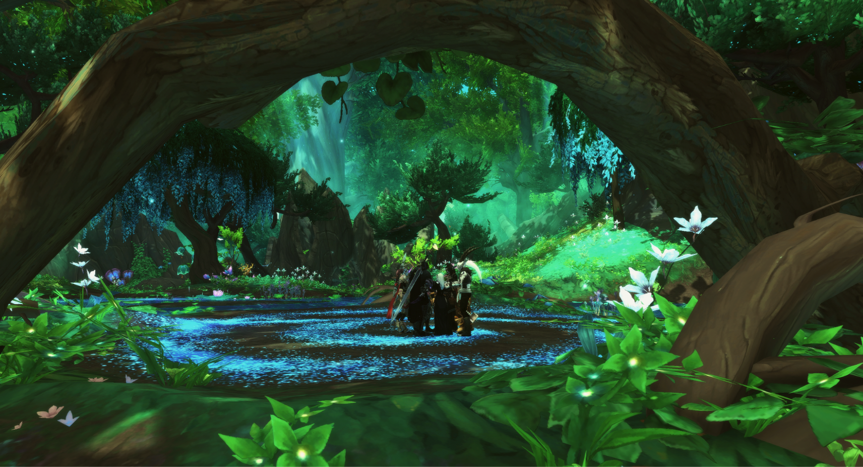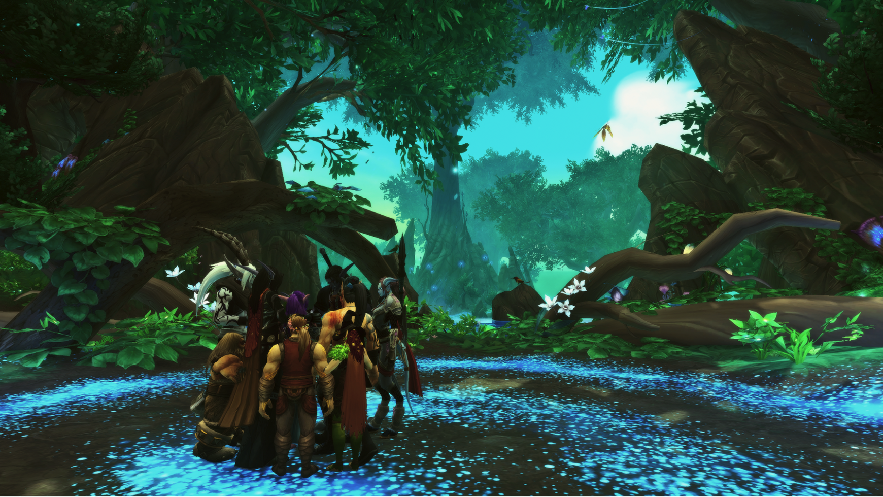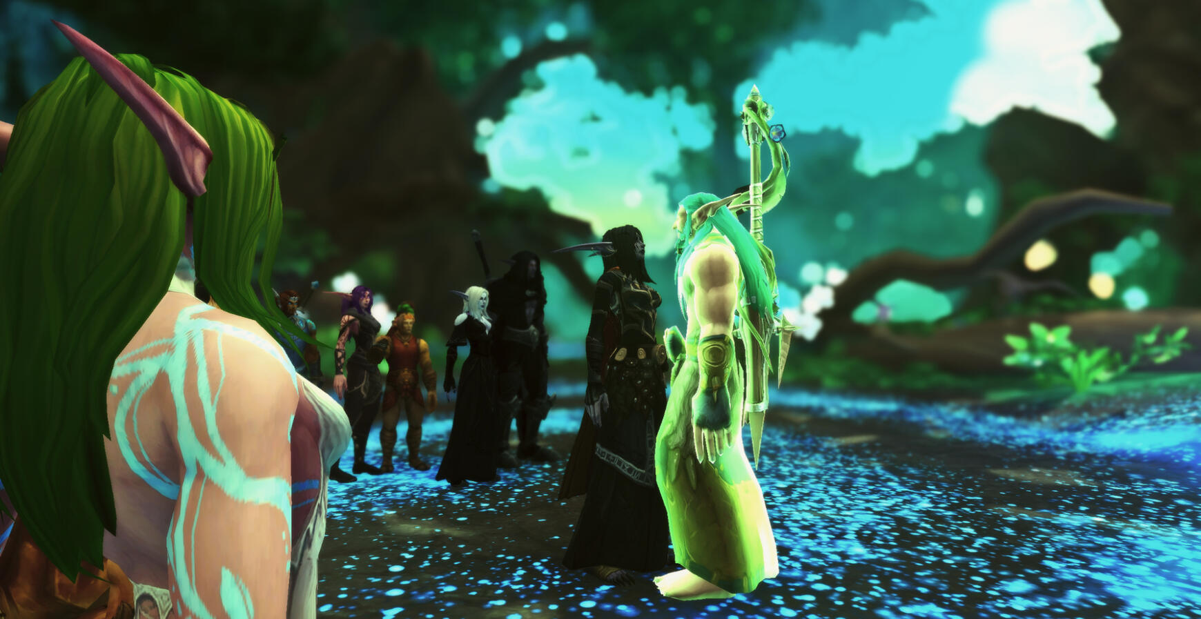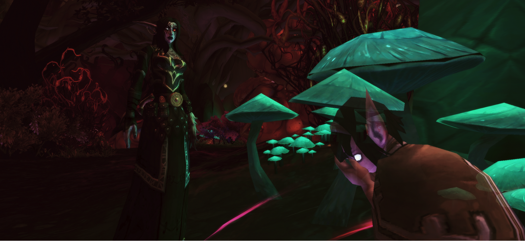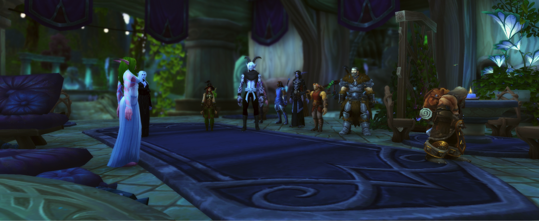 Kalendil huffed as she used her staff to help her navigate the forest floor. Months of being practically cloistered up at the temple had not helped her stamina, and she was out of breath after mere minutes of walking. She looked at Sylvari and Mythralis. The two did not display any signs of fatigue, they were alert and looked ready to spring into action at any time.“Long time since we were climbing trees near the grove, eh, Kali?” She heard Sylvari’s voice, followed by the druid’s usual subdued chuckle.“Shush, you,” she replied, between increasingly larger gulps of air. “It sounds like you two have been chasing this one for a while. What’s the story?”Mythralis took to answering the question. “I came across her a few months ago, in Feralas. I was sent to investigate strange happenings near Dream Bough. Although I do not know what her intent was, it was clear she was trying to do something to the dream portal. I thought I could handle her alone, but I barely escaped with my life.” She cleared her throat, and adjusted the strap holding her bow in place. “The minions of the void are slippery, so I decided I needed help. Luckily, I came across Sylvari in Feathermoon Stronghold, and enlisted her help,” she said, in a matter-of-fact voice.“Imagine my surprise when I saw dear mother – whom I’d believed dead after Teldrassil – alive and well in Feralas, asking for my help, of all people,” Sylvari said, interrupting her.“Your rudeness does you no credit, daughter. In any event, the second attempt failed as well. She slipped through our fingers, using illusions and shadow magic to trick us. I kept an ear to the ground since, and then I heard about the void manifestations in Val’Sharah.”Kalendil shuddered. “To think one of our own would be capable of such a thing. I would never have imagined it.” She frowned, and continued. “Is she Twilight’s Hammer? I thought they were all vanquished.”“We found evidence in her camp that seemed to indicate that. Or at least a powerful devotion to the Old Gods,” Sylvari replied.“Goddess. Do you think she’s trying the same thing here? Shala’nir is certainly close to the Dreamgrove.” Kalendil bit her lip, breathlessness momentarily forgotten as she pondered their enemy’s intentions.“It’s highly likely, yes,” Sylvari said.“I believe you will be the key to defeating her this time, Kalendil. A minion of the Old Gods is surely no match for the Goddess’ light.”Kalendil exchanged a look with Sylvari. Some things never change, it seems, and the old sentinel’s faith was one of them.