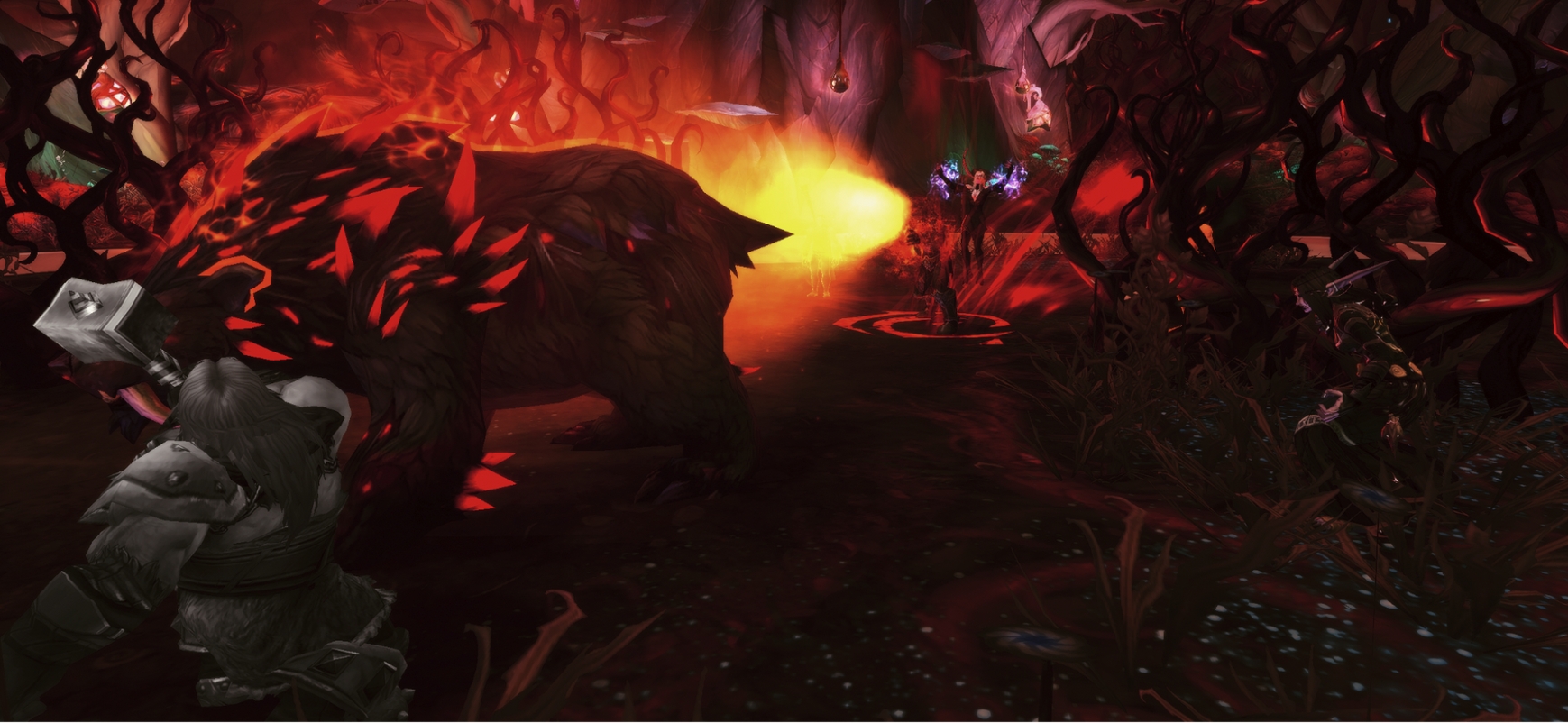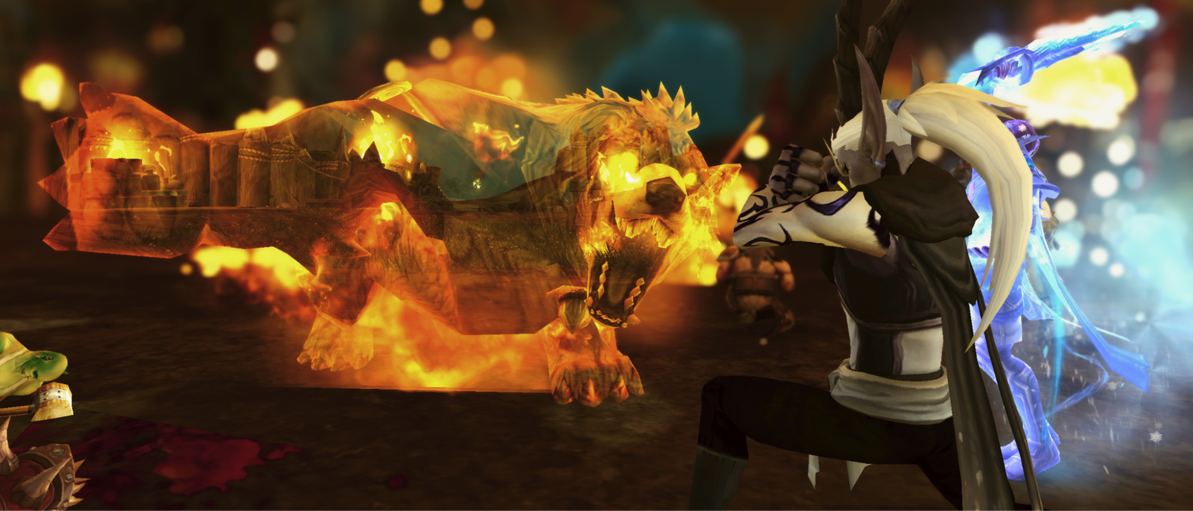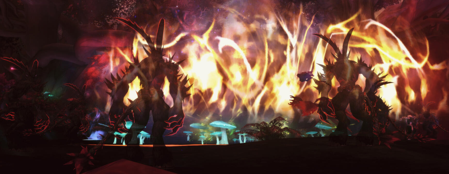 The version the Dream presented them with, however, put Mythos face to face with Sylvari's old comrades while the memory of her dissipated. They burst into flames, turning into avatars of Vengeance for Teldrassil. The group dispatched them, only for the remainder of their flames to feed a more powerful avatar, a personification of Sylvari's vendetta, fuelled further by the death of her husband at the hands of the Warsong. As Mythos defeated this enemy as well, it exploded, causing them to put up rushed barriers against the flames.