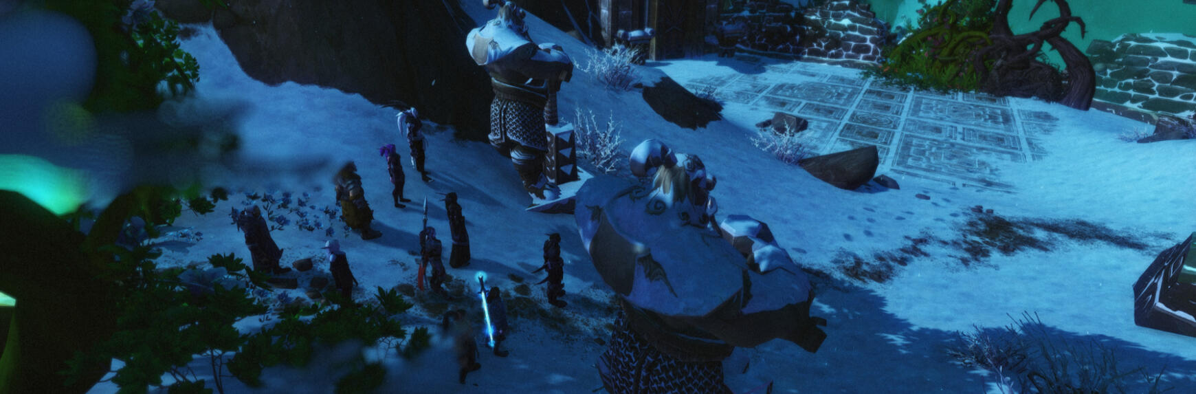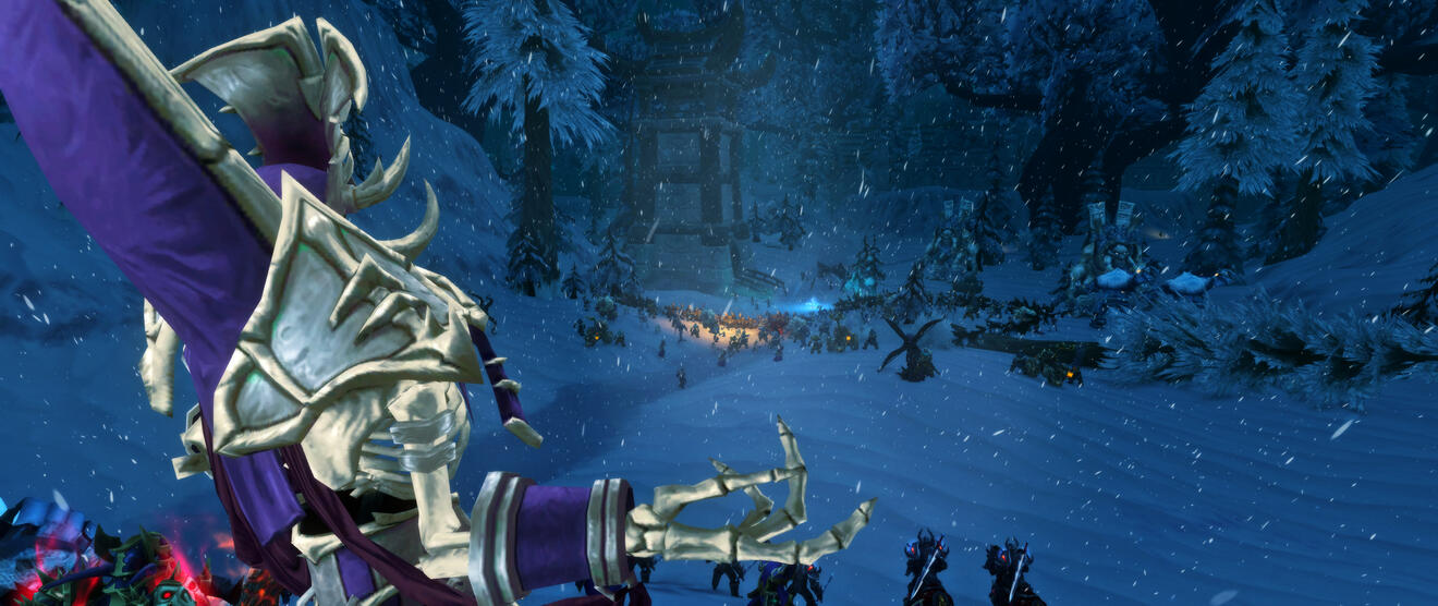 Mythos make their way to Amaranth Vale, in Winterspring, where a joint force of Argent Crusaders, Knights of the Ebon Blade and Amaranth Sentinels are battling an unexplained Scourge invasion. The death knight captain, Rime, a darkfallen Kaldorei, proves instrumental in uncovering the truth - the undead's leader is revealed to be a powerful lich calling himself the Father. He escapes upon his Necropolis, and Mythos follows him to the Kun-Lai Summit on board an Argent airship.