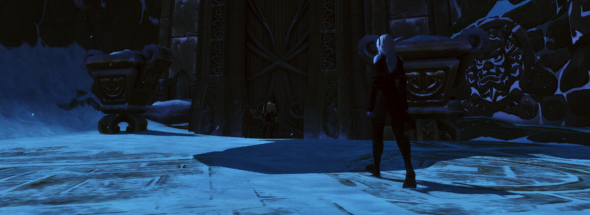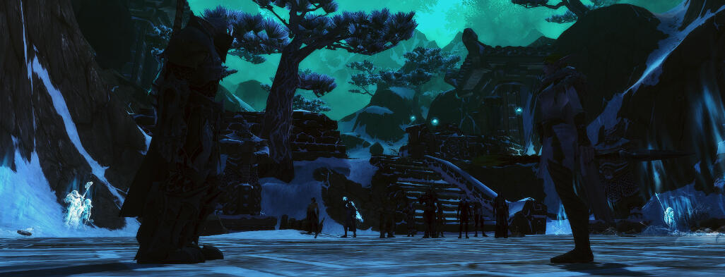 Sylvari turned to Mythos, and it was clear she was not herself, caught between the waking world and the Dream. She acknowledged them, almost as if sleepwalking. She needed help coming to terms with the memories they had all seen. Firstly, the grove around them was filled with the snows and ruins of Kun-Lai, and the skies above turned dark - Mythos helped the druid understand that Kaledas, now a death knight, was no longer the person she loved long ago, but that his essence, his identity, remained, and she should treasure the memories she had made before.