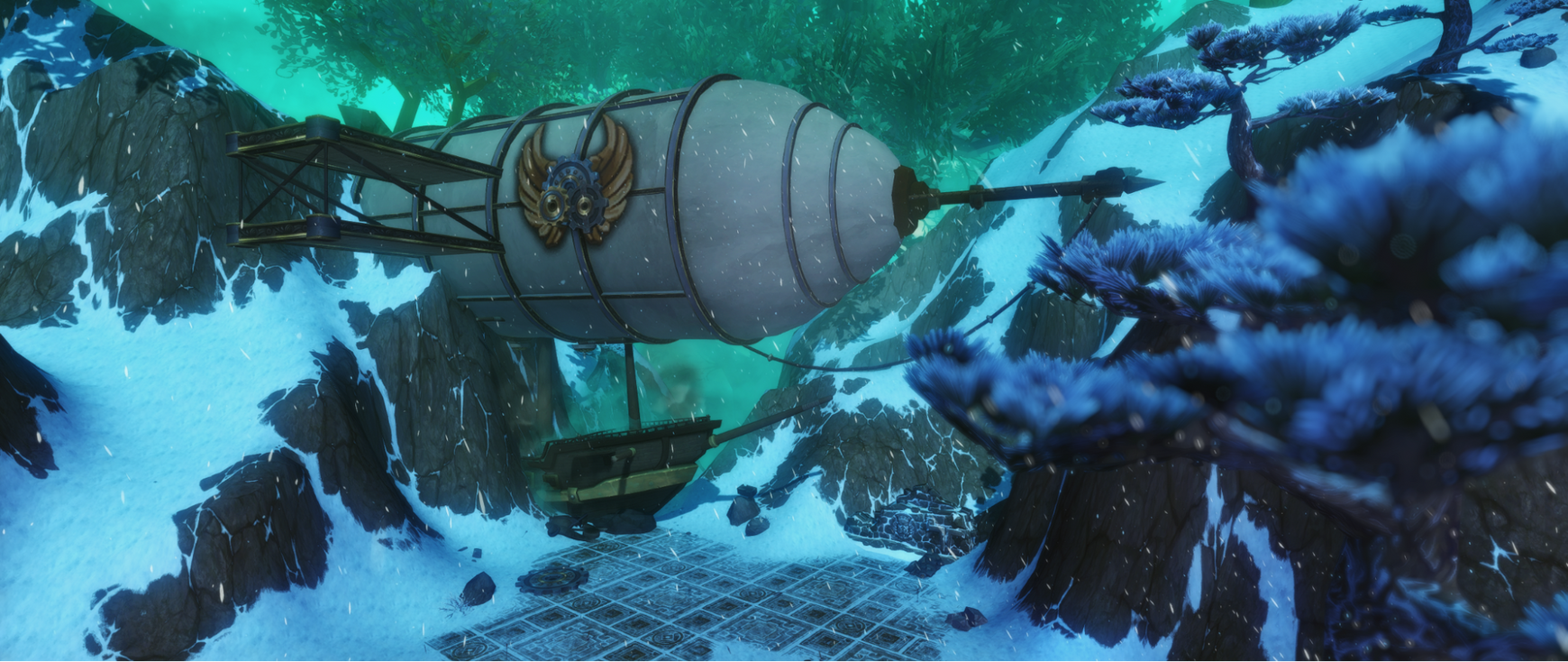 A memory of Kun-Lai's mountains awaited on the other side, a snowy valley littered with Mogu ruins. It was uncanny, though, for beyond the peaks, the Dream stretched on, its massive green trees surrounding the vale, like it was a diorama plucked from reality and deposited into the verdant realm. A trail of footprints, undoubtedly Sylvari's, led the way forward.