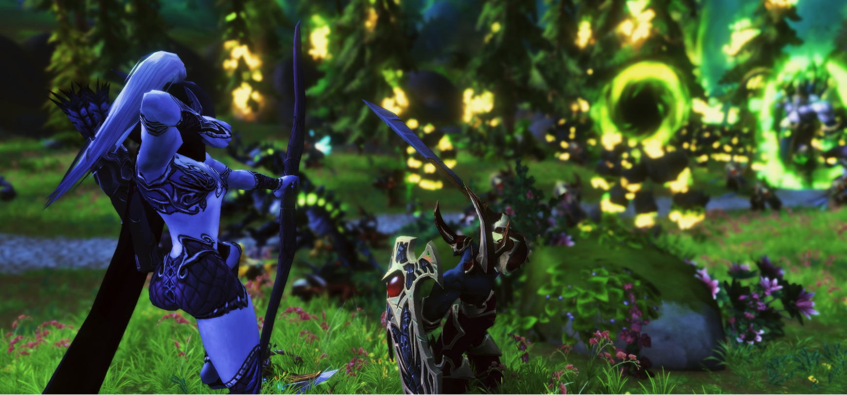As they rested in Aessina's peaceful grove, Mythos fell into a deep slumber, their minds experiencing a shared dream - another memory, this time of the Battle of Mount Hyjal. This time, however, they were part of the memory, playing the role of Sentinels fighting the invading Legion in one of the many passes leading to Nordrassil - they were still in full control of their abilities however, free to unleash them upon the demons.
