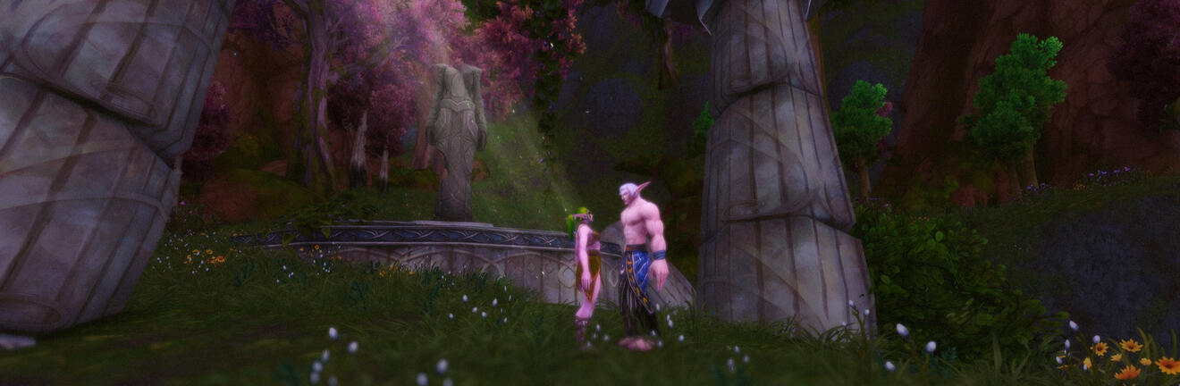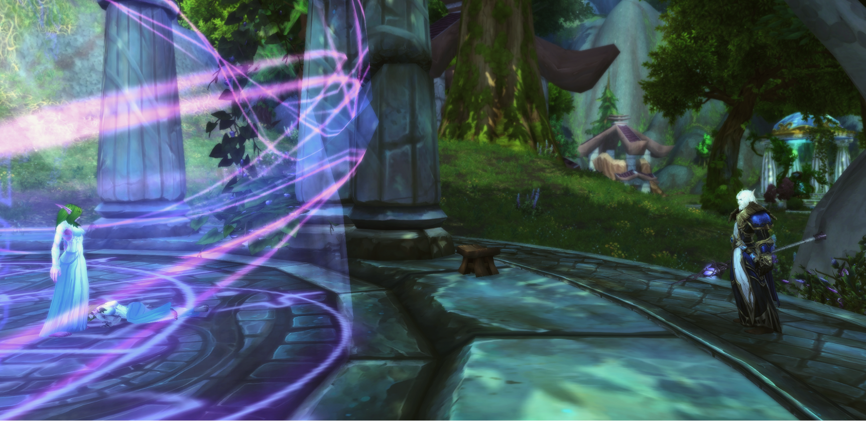 Finally, Sylvari transported the group back to Azeroth, but their homecoming was not as smooth as perhaps expected. They all found themselves amidst some elven ruins in Moonglade, within an intricately constructed magical barrier. Their captor soon revealed himself... Valodriel.